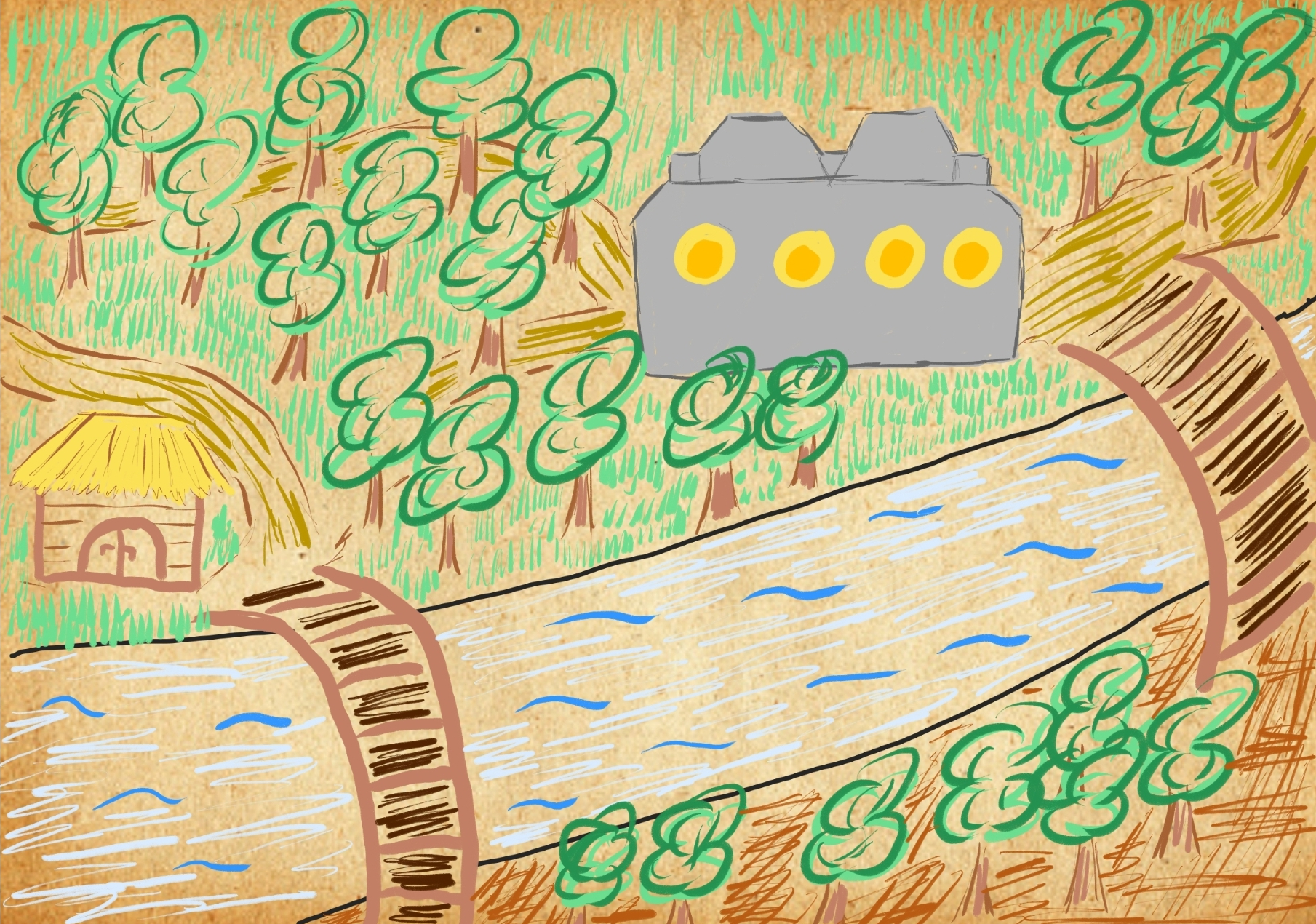 „Hier nehmt das Boot. Die Festung mit den großen Röhren, wo Harok gefangen gehalten wird, befindet sich flussaufwärts. Hier ist eine Karte, die habe ich von einem Händler bekommen. Die Festung ist eingezeichnet. Von Gästen, die hier vorbeigekommen sind, weiß ich, das der Weg durch den Wald nicht geht. Es sind viele Wachen im Wald unterwegs. Darum bleibt euch nur der Wasserweg. Die Morgenzeit ist günstig, denn die dunklen Geschöpfe unserer Welt sind eher nachtaktiv und werden zu so früher Stunde sicher noch friedlich schlummern. Ich habe jemanden zu den Elfen geschickt, mit der Bitte, euch unterwegs zu helfen. “ Sagt meinem Bruder, dass ich mit einem Proviantsack an unserem alten Versteck auf ihn warten werde, denn er wird nach der Flucht sich erstmal in die Obhut der Königin begeben müssen. Die kann ihn beschützen. Jetzt auf, die Zeit drängt. Ich wünsche euch viel Glück.“