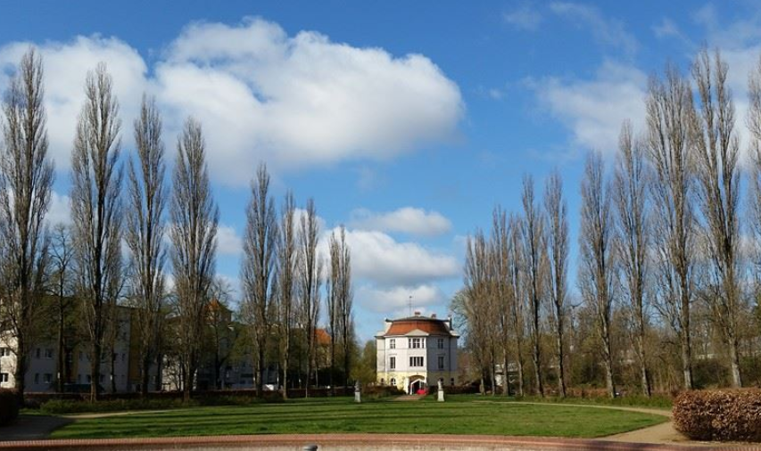 Eurer Weg führt kreuz und quer über Steglitz-Zehlendorf und seine Nachbarbezirke. Die Aussicht ist, toll aber wo ist der Dieb und die Fledermaus? Lugia setzt zur Landung an auf einer großen runden Wiese. Es sieht aus wie ein Park. Es gibt mehrere Wege aus hellem Sand. Am einen Ende ist ein Brunnen und am anderen Ende ein fast rundes Gebäude. Lugia landet auf der großen Wiese.