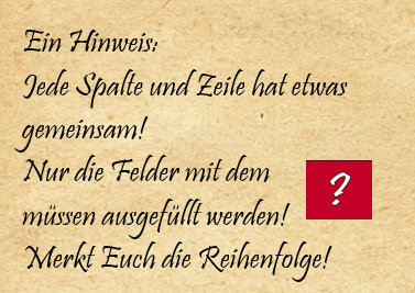 Ganz schön kniffelig auf den ersten Blick, aber wenn man das System durchschaut, ganz einfach. Solltet Ihr nicht darauf kommen hat die Elfe noch einen Tipp für Euch…