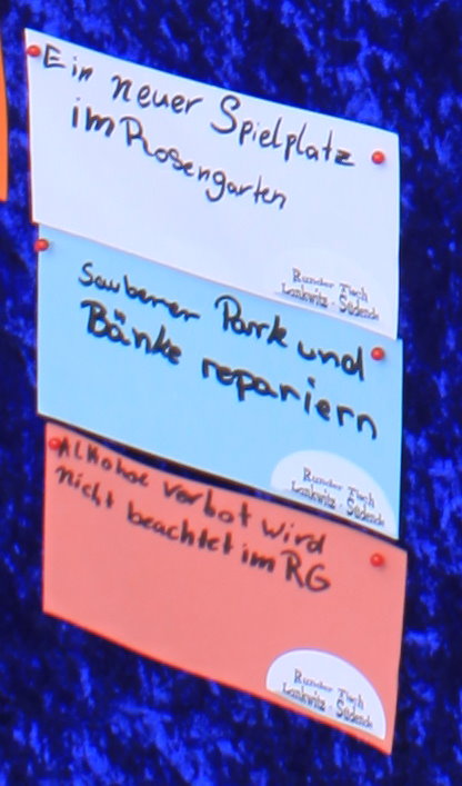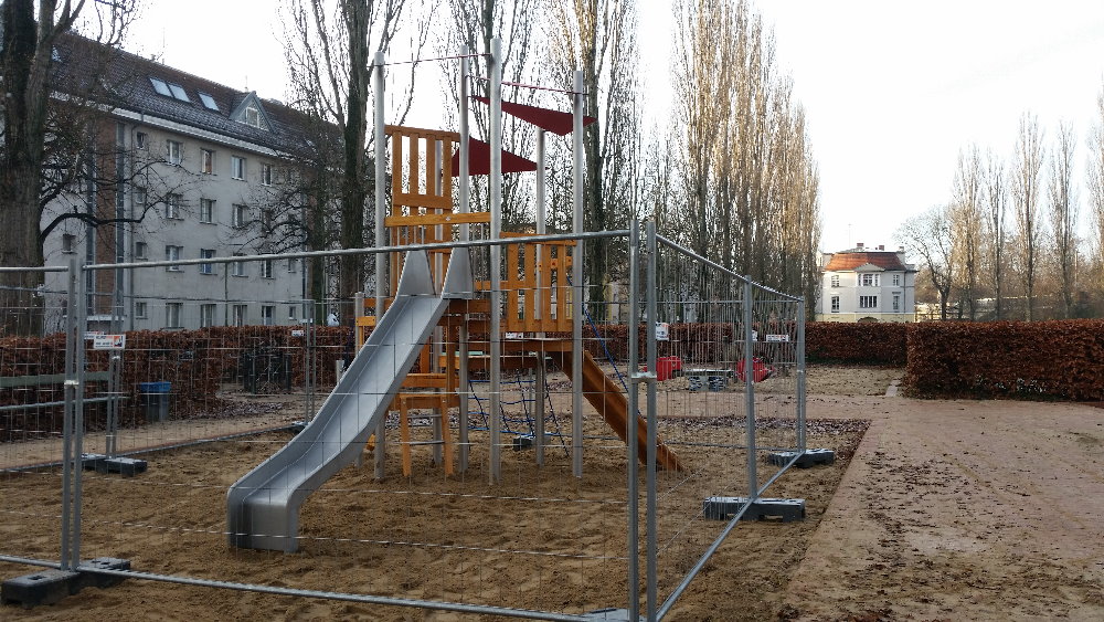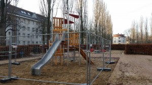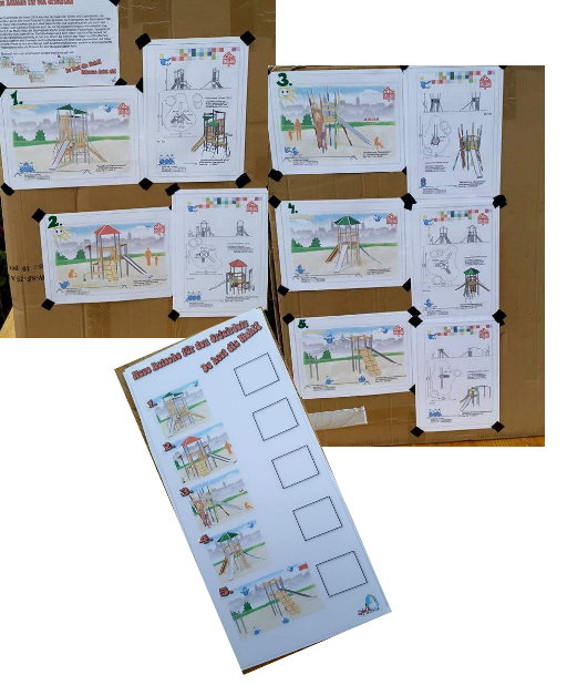 Beim Marktplatz der Ideen 2014 haben sich die Kids auch viele Gedanken gemacht was sie für Ideen zur Verbesserung für den Kiez haben. Der größte Wunsch und „DIE“ Idee war dann unteranderem eine Rutsche für den Spielplatz am Rosengarten. Die Idee war geboren, aber wie geht das nun? Sie haben beim Kinder und Jugendhaushalt die Idee eingebracht und dafür ein bisschen Geld bekommen. Das Natur- und Grünflächenamt Steglitz-Zehlendorf hat in diesem Jahr Geld bekommen für die verbesserung von Spielplätzen und hat davon noch ein bisschen was oben drauf gepackt. So konnten die Kids im Sommer in einer geheimen Wahl mit Wahlurne und mobiler Präsentationswand zwischen 5 verschiedenen Kletterkombinationen mit Rutsche entscheiden.